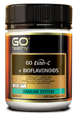 GO ESTER-C + BIOFLAVONOIDS is a superior Vitamin C formula containing Ester-C, an innovative form of Vitamin C which provides up to 24-hour immune support. Ester-C is better retained in the body than standard Vitamin C, allowing it to work longer in the body". Ester-C is non-acidic, making it stomach friendly and more tolerable at higher intakes than standard Vitamin C.