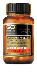 GO PROBIOTIC 40 BILLION is designed to maintain and restore good gut bacteria. Antibiotic medication, the contraceptive pill, alcohol and stress can create an imbalance of good and bad microflora in the intestinal tract which can lead to ill health. Having high levels of good bacteria in the gut is essential for maintaining a healthy immune system and all round good health. GO Probiotic 40 Billion contains HOWARU restore ®, a clinically researched blend of 4 heat stable and stomach acid resistant probiotic strains totalling 40 billion live cells.