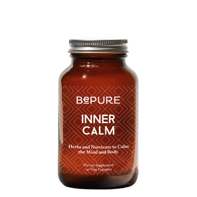 BePure Inner Calm contains calming herbs and nutrients designed to minimise the effects of stress and overwhelm on the mind and body. With powerful herbs that support reducing feelings of feeling overwhelmed and stress, combined with nutrients that support the production of our calming neurotransmitter GABA. InnerCalm is here to help ease feelings of worry and overwhelm, long term. Here to soothe the mind and body, InnerCalm provides support for your daily unwind.