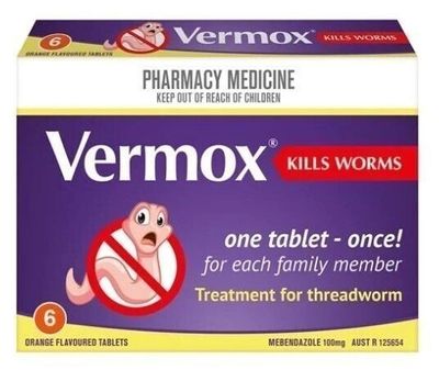 Vermox Suspension is a medicine, which is used to treat threadworms (sometimes known as pinworms) and other common worm infections e.g. (whipworm, roundworm, hookworm). The medicine contains mebendazole, which is one of a group of medicines called "anthelmintics". This medicine is for use in adults and children aged over 2 years.